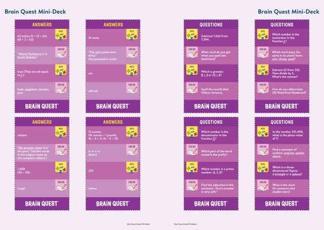 Loved by kids, teacher approved, and trusted by parents, Brain Quest Grade 4 Workbook reviews and reinforces what children are learning in the classroom in an instantly engaging, entertaining way. Each page is jam packed with fun activities, practice exercises, and games covering vocabulary, language arts, math word problems, multiplication and division, fractions and decimals, geometry and measurement social studies, science, and much more.