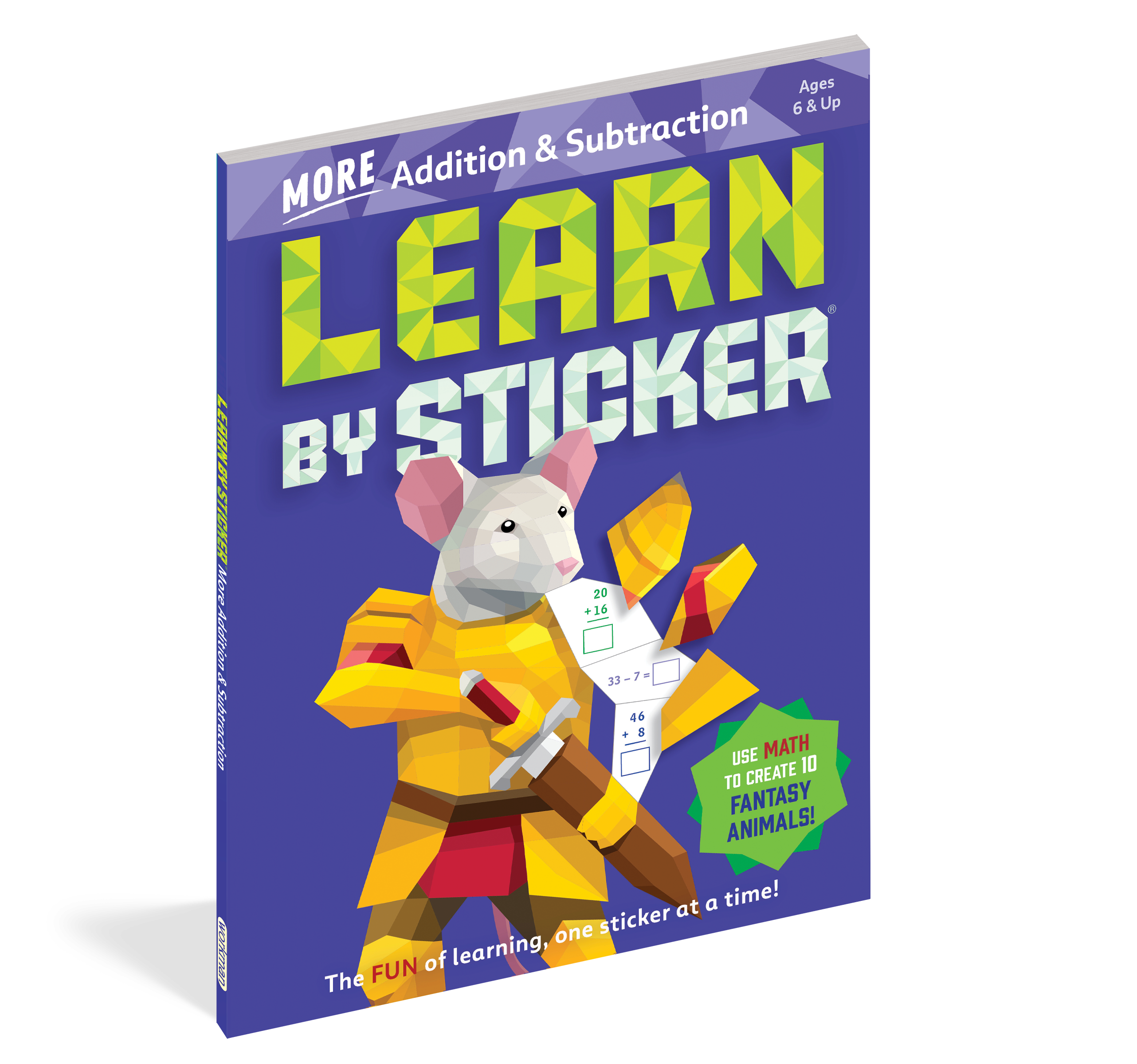 In Learn by Sticker: More Addition and Subtraction, solve second grade-level addition and subtraction problems and use the answers to determine where to place each sticker to create ten sticker images of charming fantasy animals. Plus, the back of each sticker page contains fun, critical thinking-based math activities like solving riddles, decoding secret messages, and more.