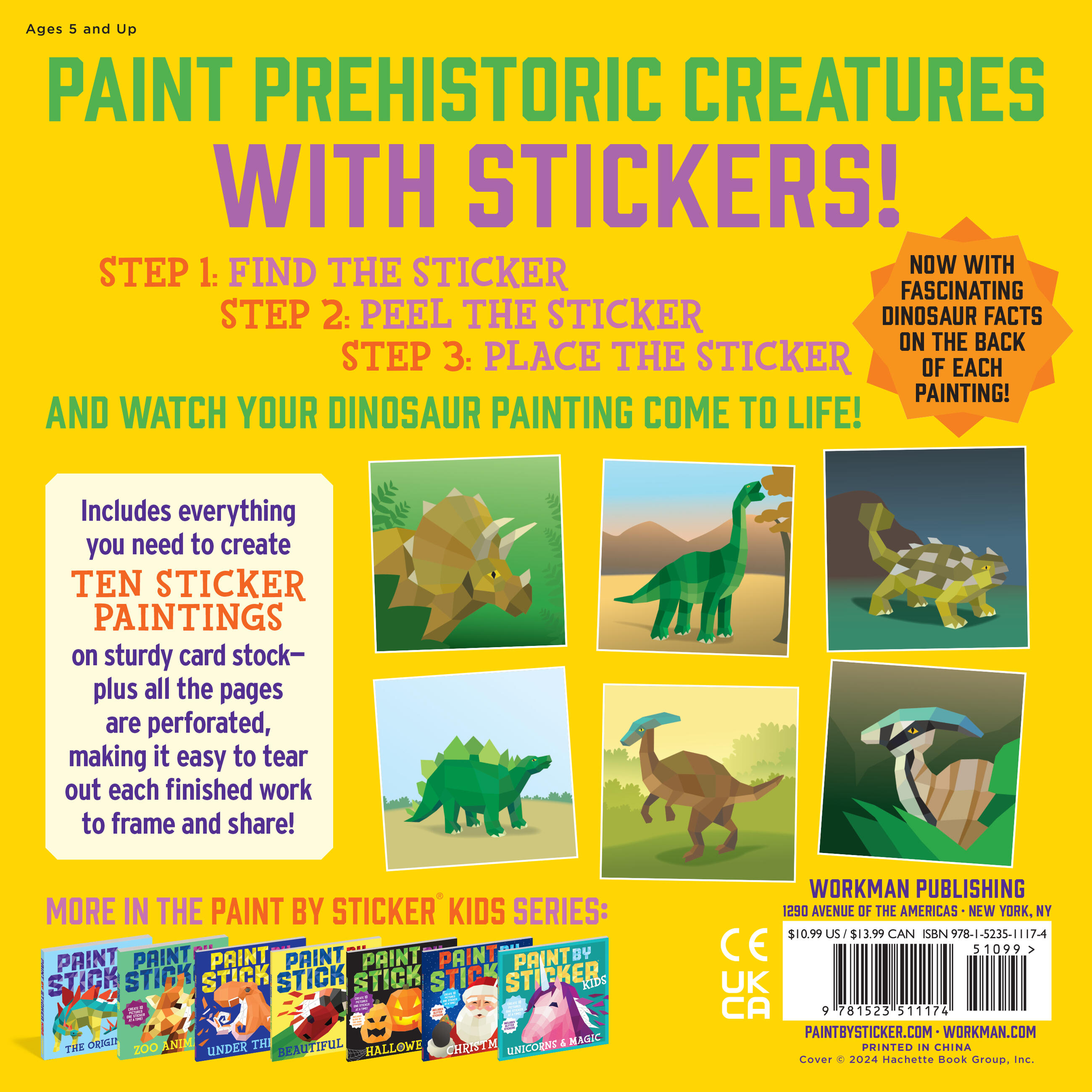 Features fascinating dinosaur facts on the back of each painting!