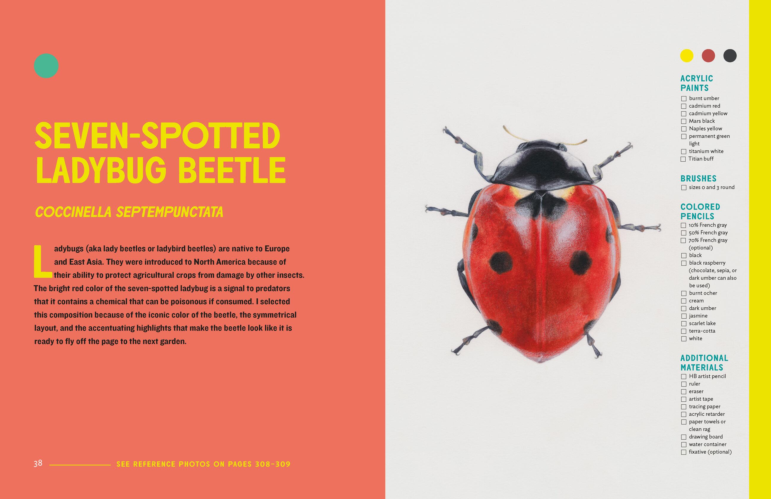 The Insect Artist offers a complete course in illustration and lifelike artwork. The 15 projects are designed to build on one another, beginning with techniques that strengthen drawing and acrylic painting skills. More advanced projects focus on design principles, realistic environments, and creative challenges. Clear instructions and visual demonstrations describe each step of the process and reference photos show the anatomy and coloration of each insect. Short outdoor exercises are included as lessons on actively observing nature. This is a book for artists of all levels and anyone interested in rediscovering the natural world through artistic expression.Packed with creative tips: